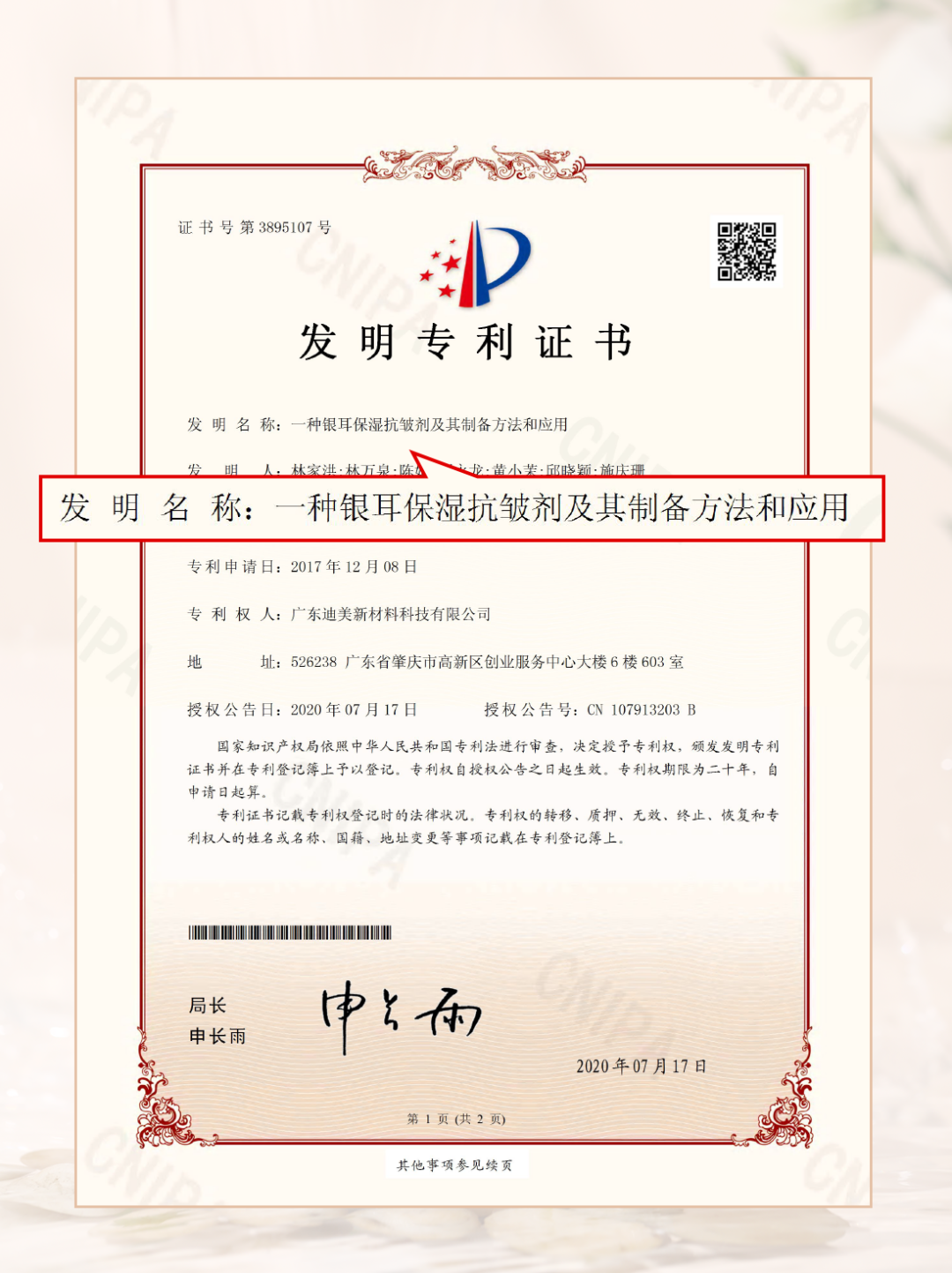 重头戏!杀手锏!是其他品牌都还没有攻破的技术点:有保湿锁水专利证书。通过給头皮补水来控制水油平衡。