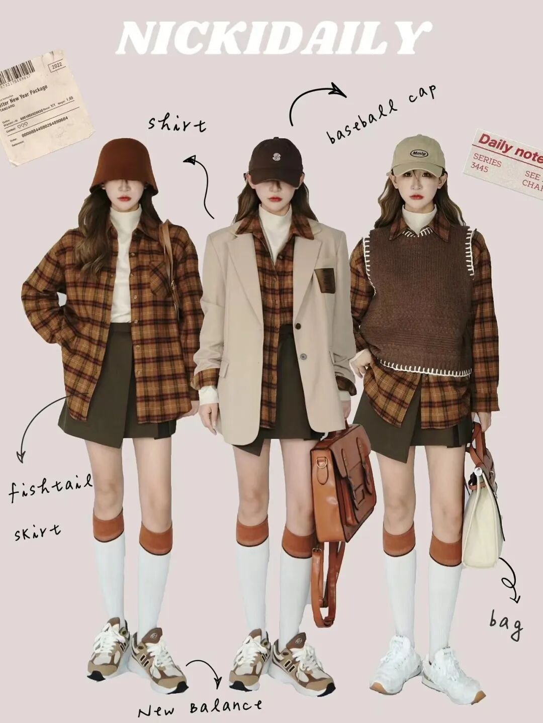 这套公式,我个人认为初秋穿最合适不过,用来搭配很多复古风的格纹元素,流行又不烂大街。
