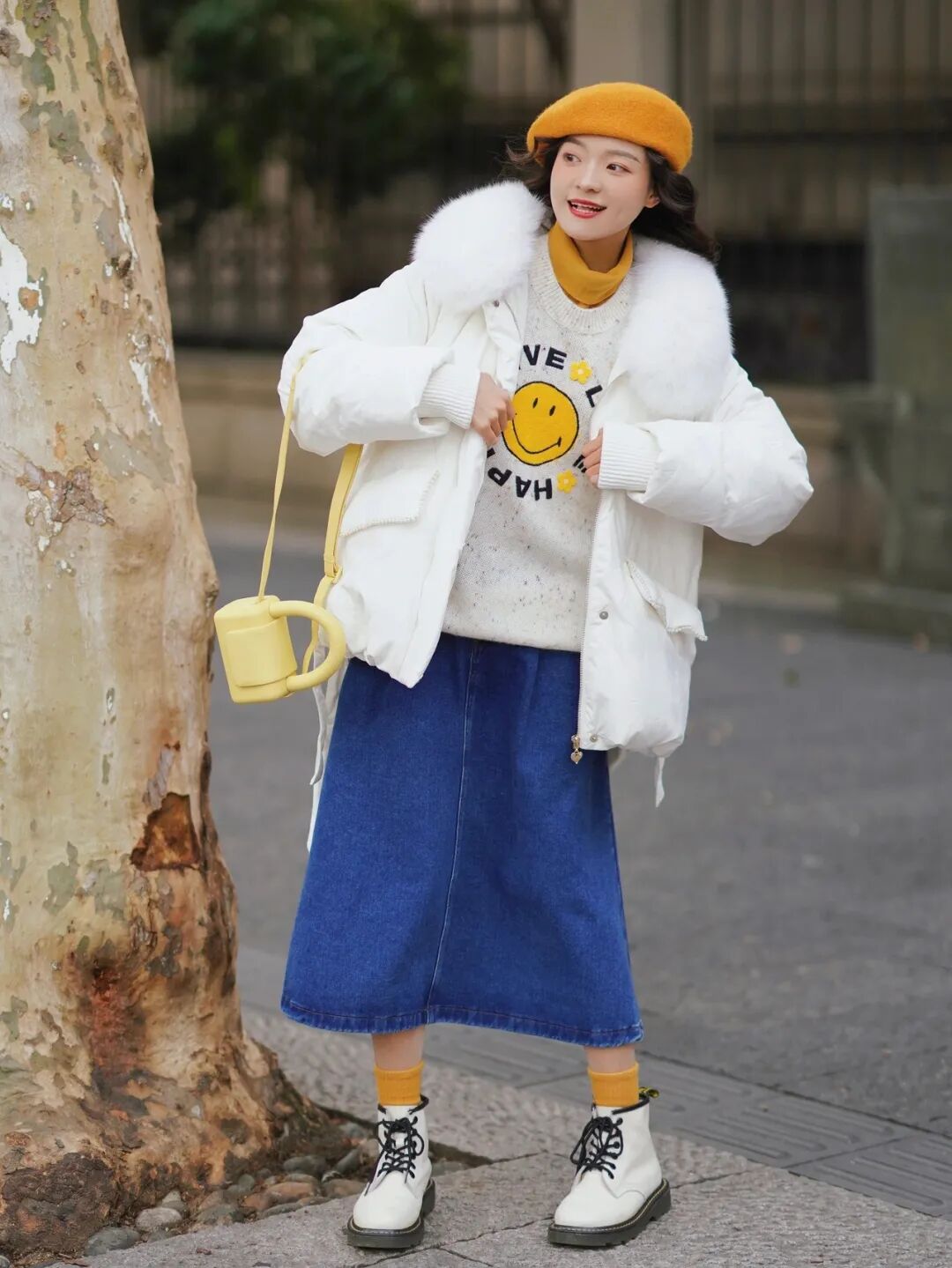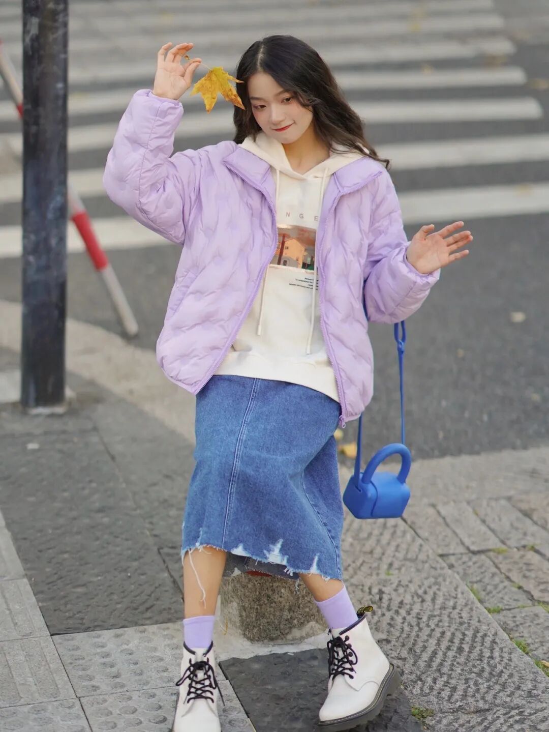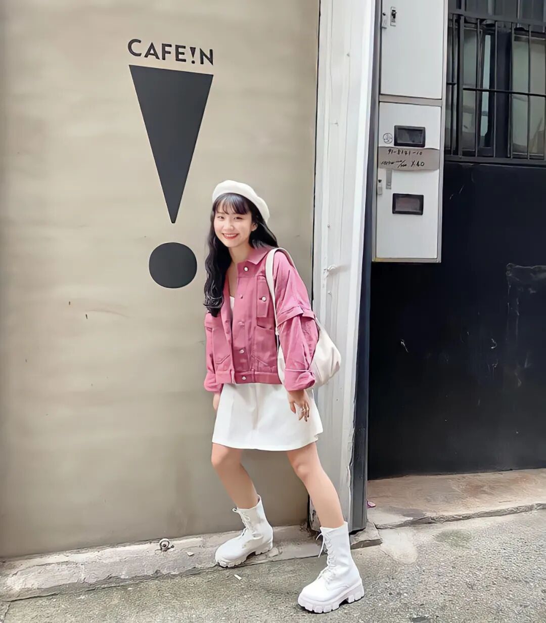 正确的做法是什么呢?很简单,浅色马丁靴不变的话,把裙子的甜度降低就好喇。