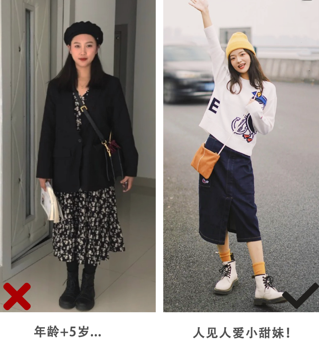 当然喇,这可不是说裙子+马丁靴闭眼穿都好看哈,搭配选款不对,也是分分钟翻车的节奏🤦