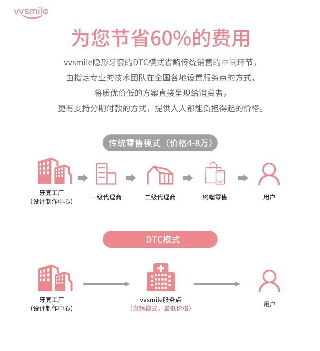 vvsmile推出了智能互联网平台服务模式,由专职口腔顾问全程线上陪同疗程,让患者足不出户即可完成隐形矫正绝大部分流程(接近85%)。