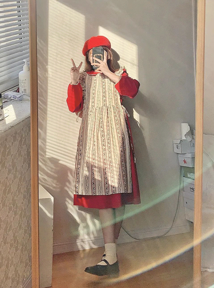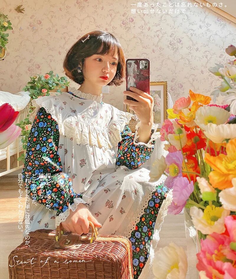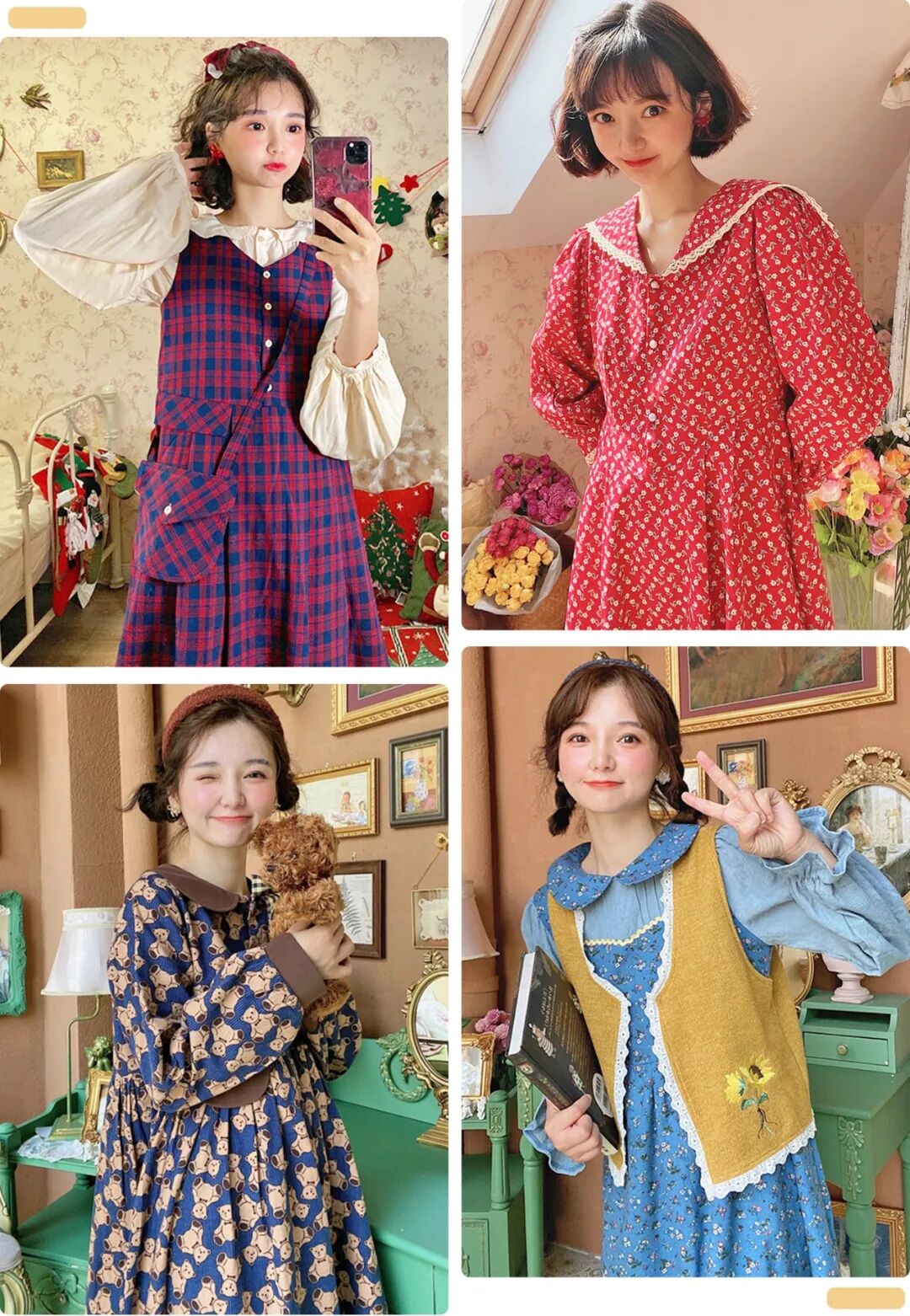 这家直接就是小个子盲买都不出错的店,模特就是店主本人(158cm),风格大体是日系复古以及可爱风的走向👇