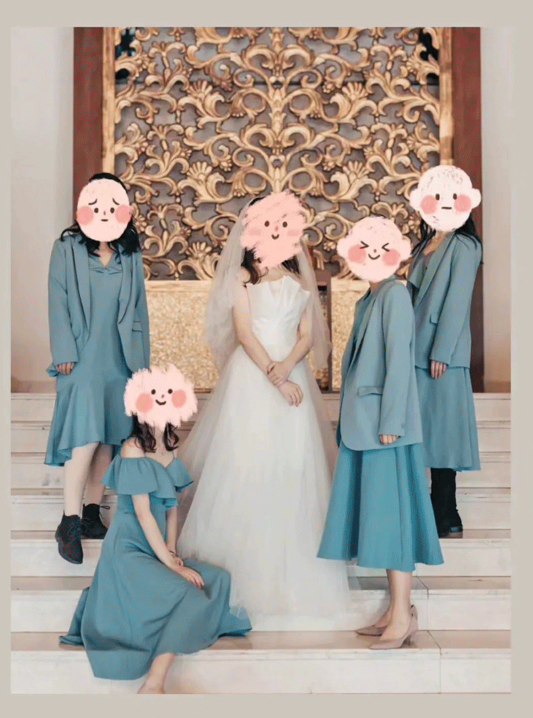 而且同色系还做了一系列不同设计的裙装,很多姐妹都买来当伴娘服👇