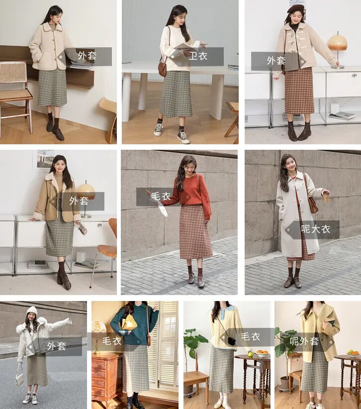 冬天的话,外面可以搭件纯色大衣或者小香风外套,把保暖度和时髦度一并拉满。