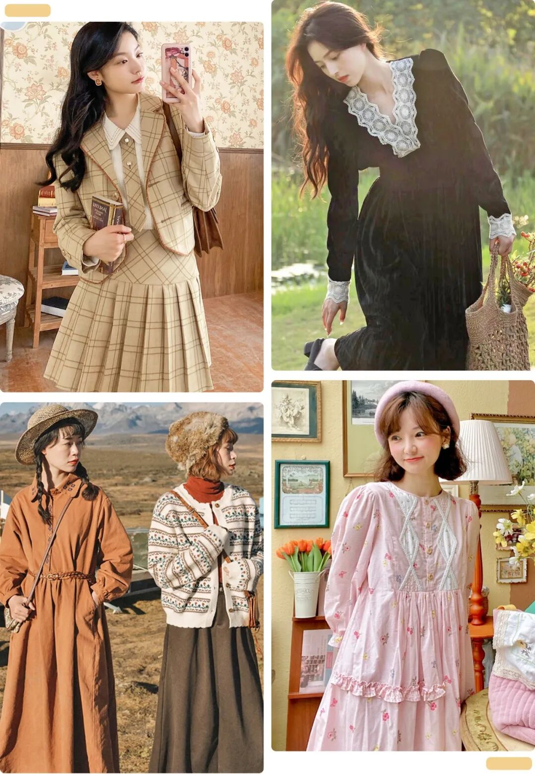 它的裙装不管是款式还是配色都偏向复古格调,比较好搭配,属于稳定发挥型选手👇
