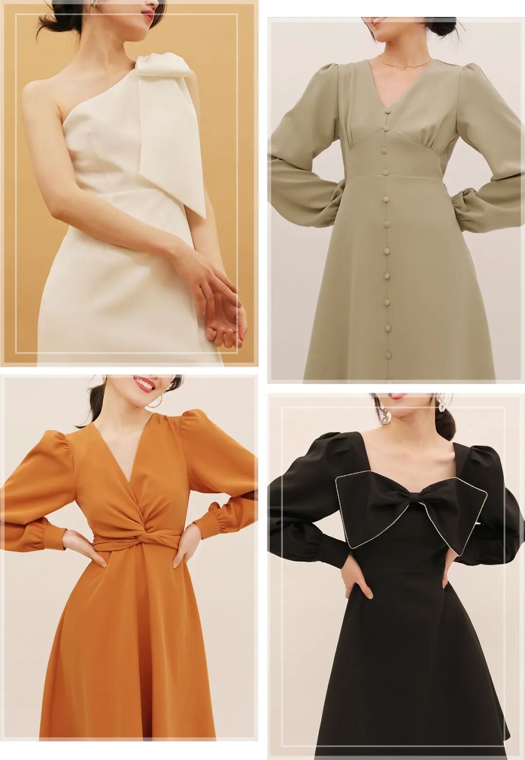 前面7家都是日常裙为主,这家则主打各种礼服,款式偏简约风,基本都是纯色加一点设计感剪裁,没有过多花里花哨的东西,就显得很经典耐看。