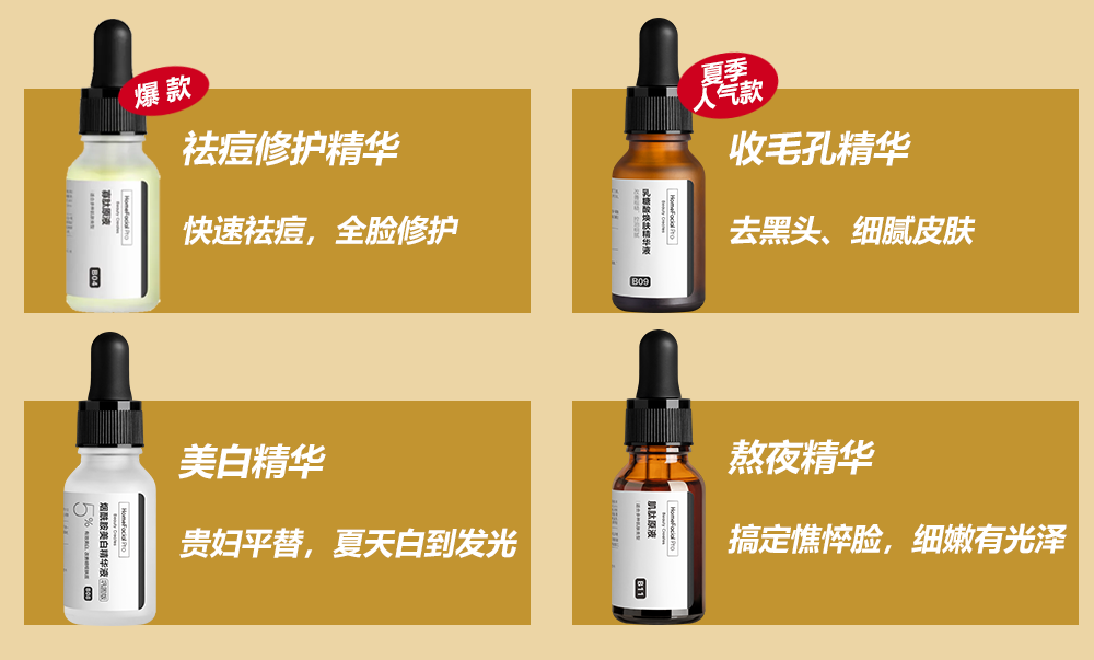 他家精华线,是品牌“亲女儿”,HFP所有好料、新技术,都优先供过去,功效专业又齐全:美白/嫩脸/祛痘/收毛孔…全都有。