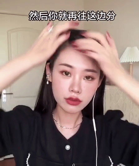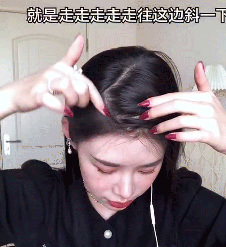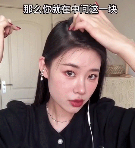 这时你就在中间把后方的头发拨到另一边,形状就是一个拐角,这样发顶又蓬松也没有发缝,nice~