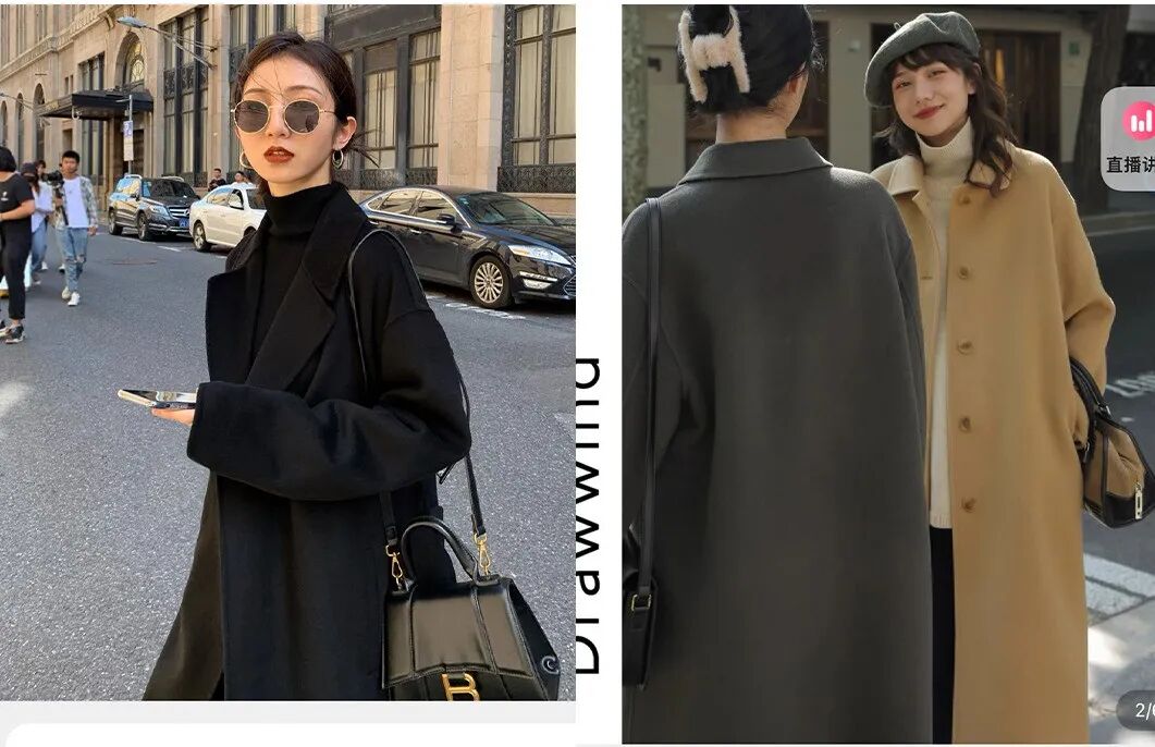 举个例子,这两件大衣看模特图面料都没啥差别👇