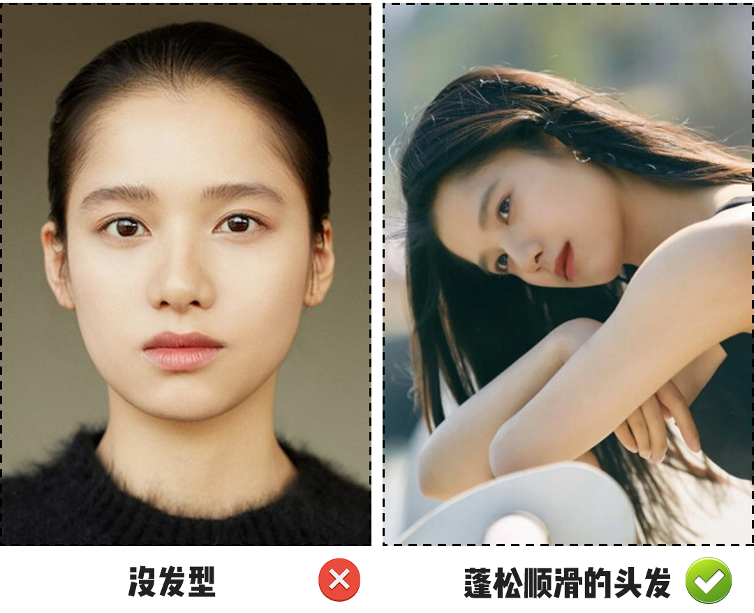 钝感长相大部分都不是很精巧的五官,头发如果毛躁、贴头皮的话就更显得人没有质感。