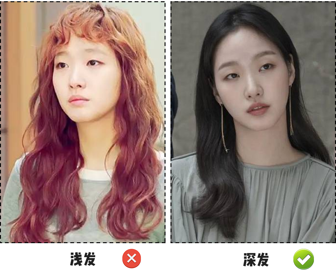 首先就是要选对发色和眉色:尽量避开浅色,浅发色很容易显得人毛毛躁躁,而且掉色还会成“布丁头”,完全和好看挨不到边了。
