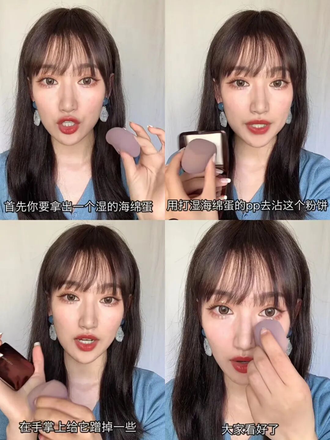 操作也很简单,平时定妆后,用湿润的海绵蛋蘸取粉饼,在手上蹭掉多余的粉后,用按压的方式涂在眼下三角区的位置。