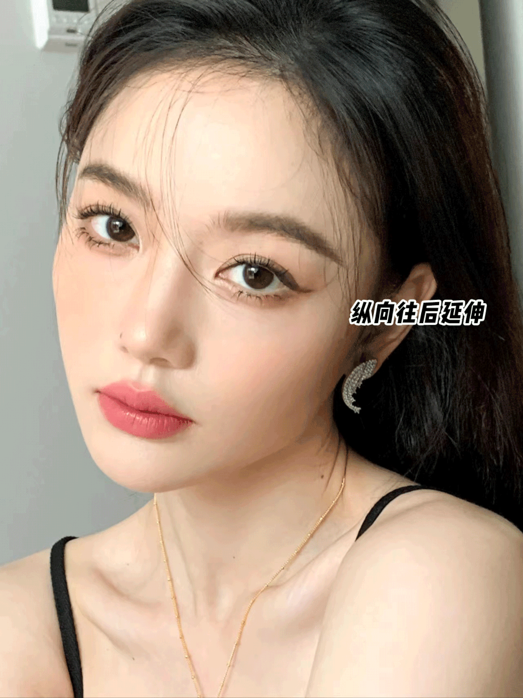 而且还有很自然的弧度。眉中和眉尾都向后延伸,整个眉毛的走势是纵向往上的,整体看起来是小挑眉👇