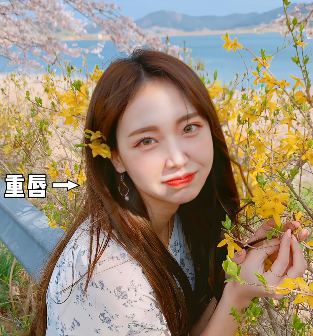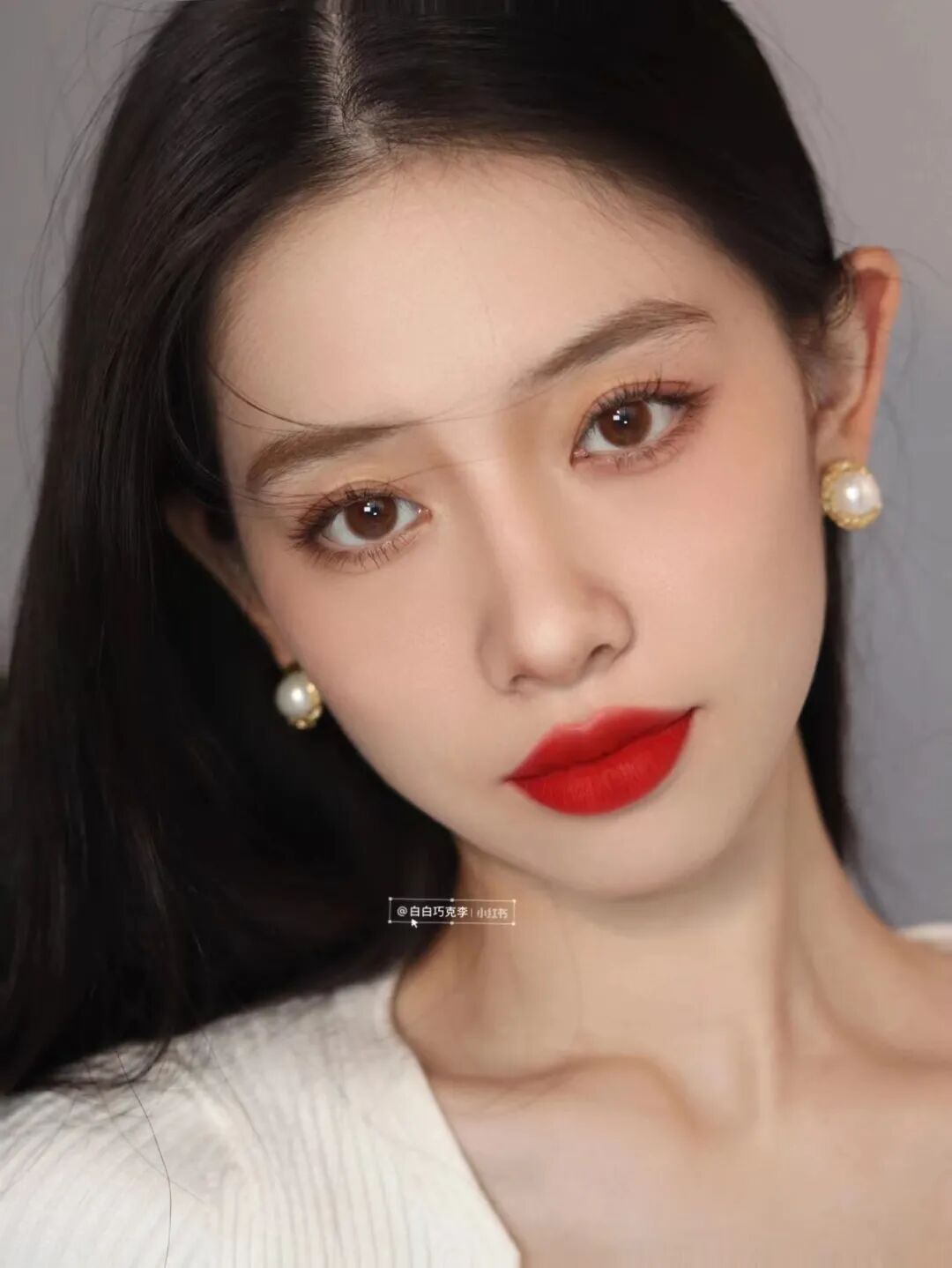 特别是有的小个子鼻子有点大,脸型也不流畅,顶着大红唇远远望去,视线全在不好看的下半张脸,反倒把好看的眉眼给淹没了👇
