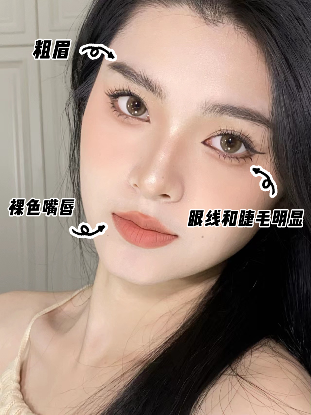但是!强调眉毛和口红之后,就跟解除封印似的,气质瞬间拔高了!👇