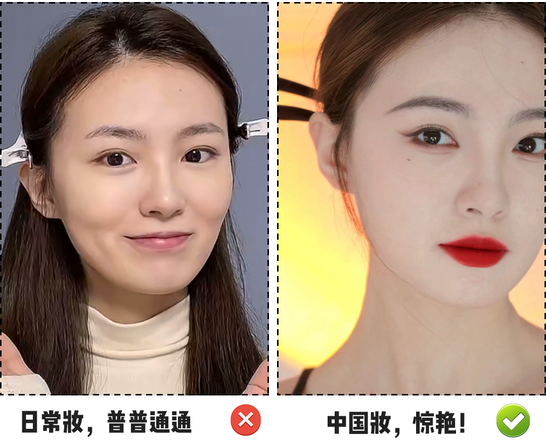 中式妆一般都是和红唇对比才更有冲击力和色彩协调度👇