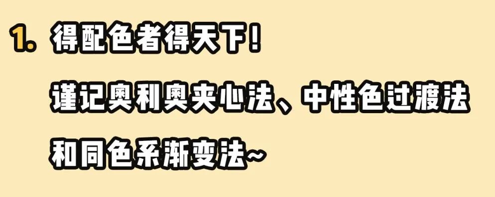 看了那么多种配色方法,想必大家应该知道刚刚那位姐妹要怎么改进了吧?我就选其中一个作为例子!