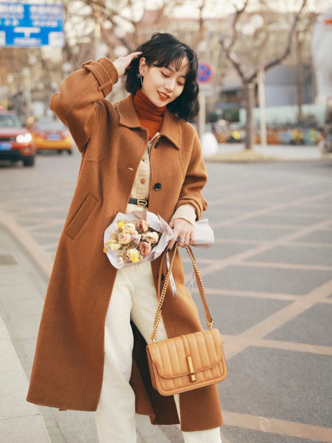 我们应该换上一条九分长度的直筒裤,牛仔、灯芯绒之类的都可以,立马利落起来~