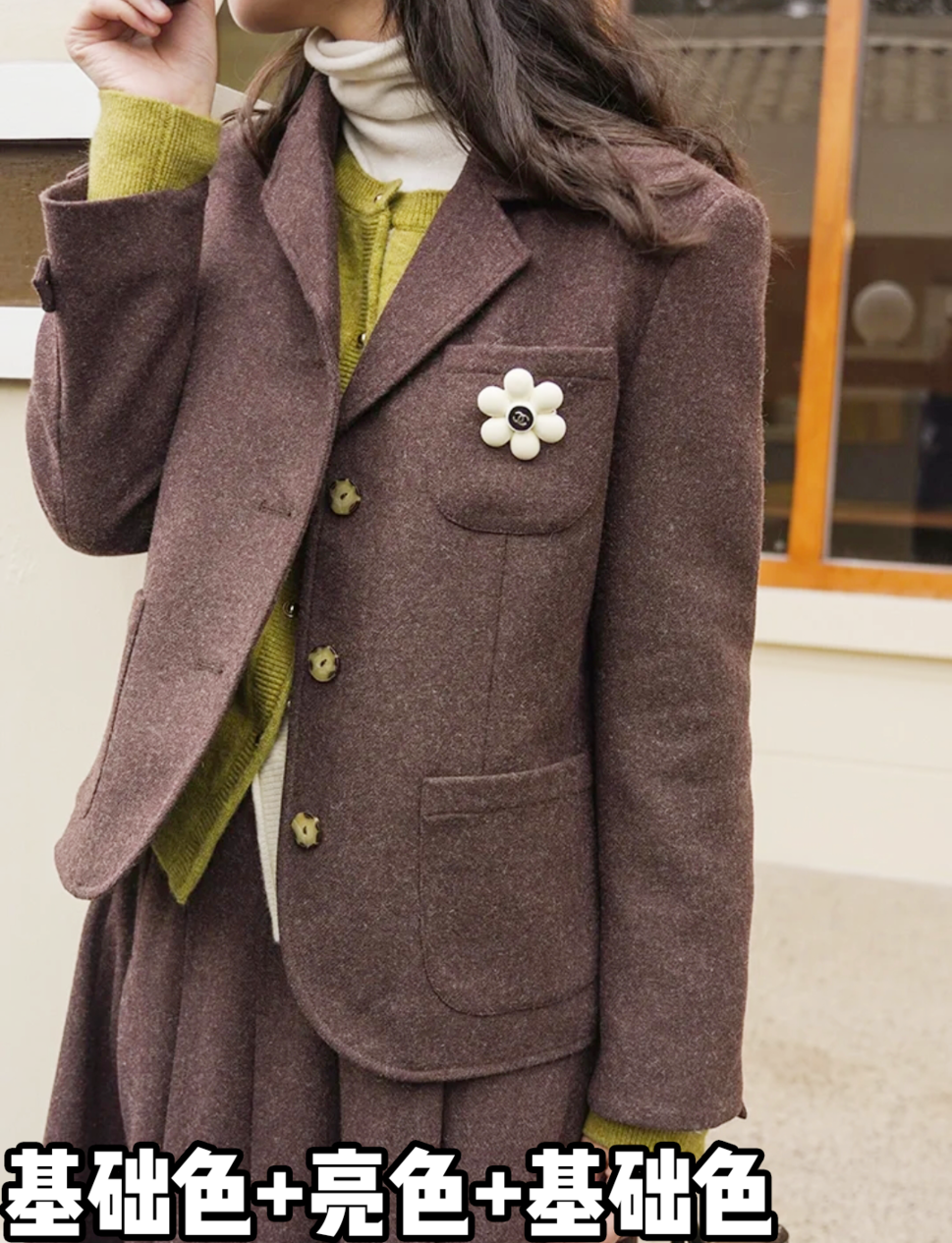 其次,领子的大小也是讲究的,要么外层领子大,内层领口存在感低;要么着重于内搭领子,削弱外套领子存在感👇
