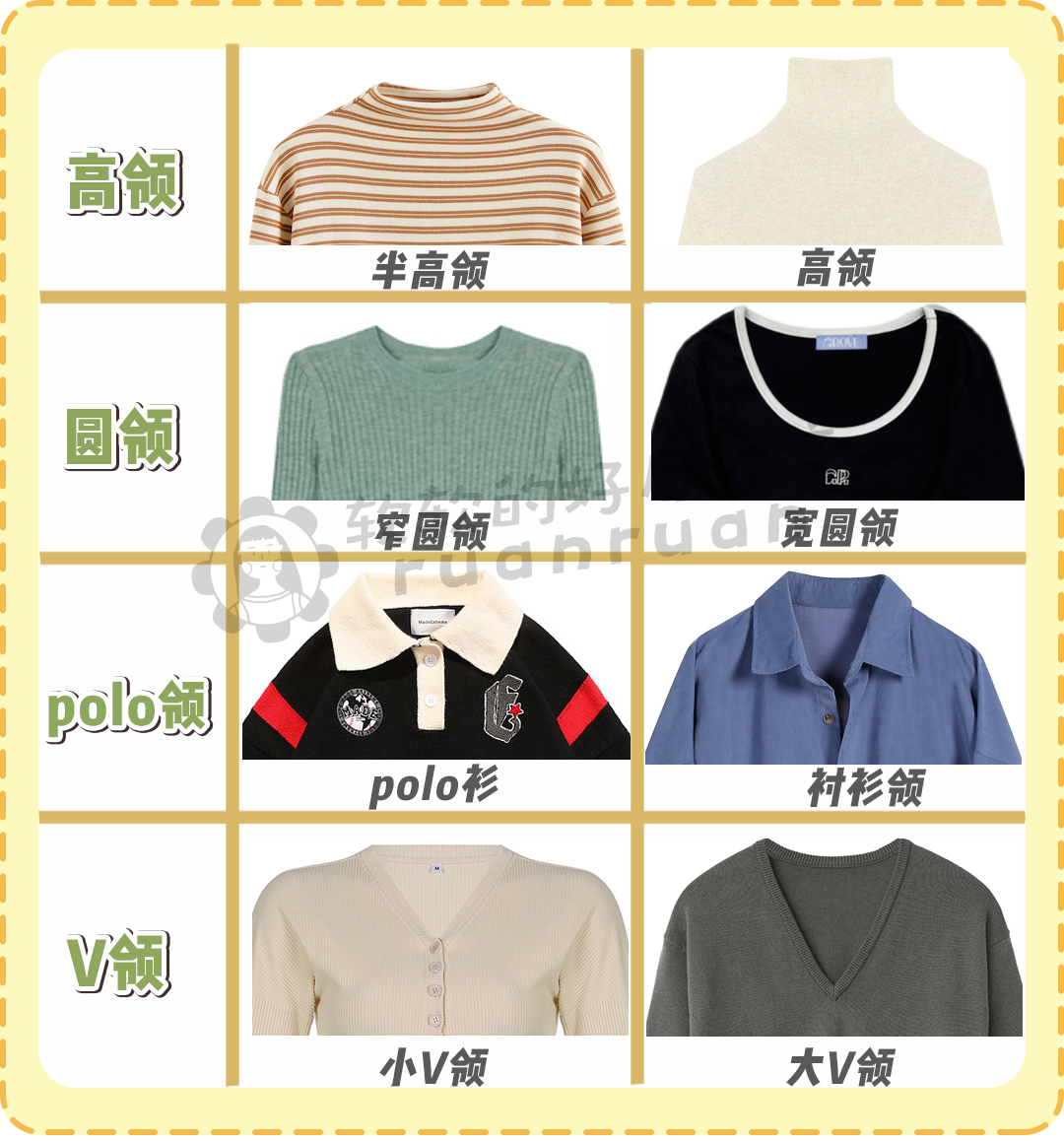 要想穿得好看,首先我们得知道哪些领口适合用来叠穿,给你们总结了一下,有需要的可以自取喔~