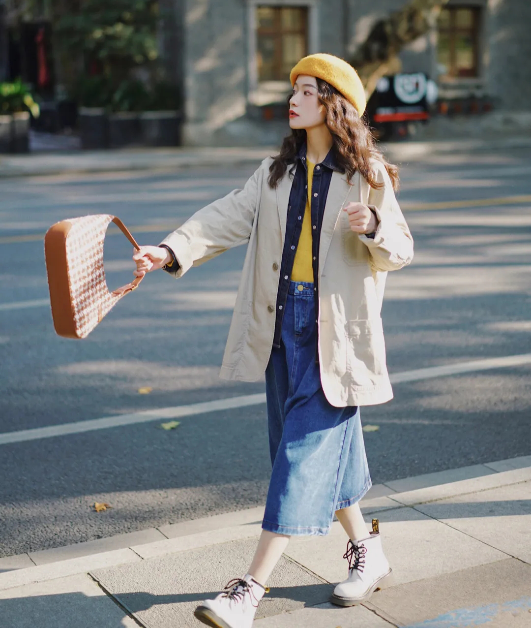 刚才那一身搭配,如果把硬挺的夹克,换成柔软的牛仔衬衫,看起来就会顺眼一些!北方姐妹们觉得不够保暖,可以在外面穿厚一点,但同样软绵绵的羊羔毛外套~
