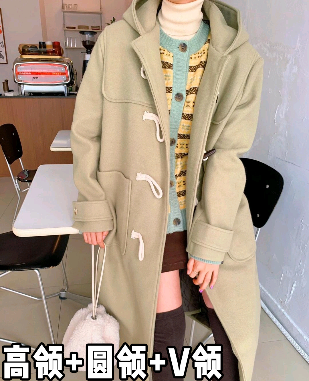 ▲内穿圆领修身款卫衣,叠加围巾都没问题!