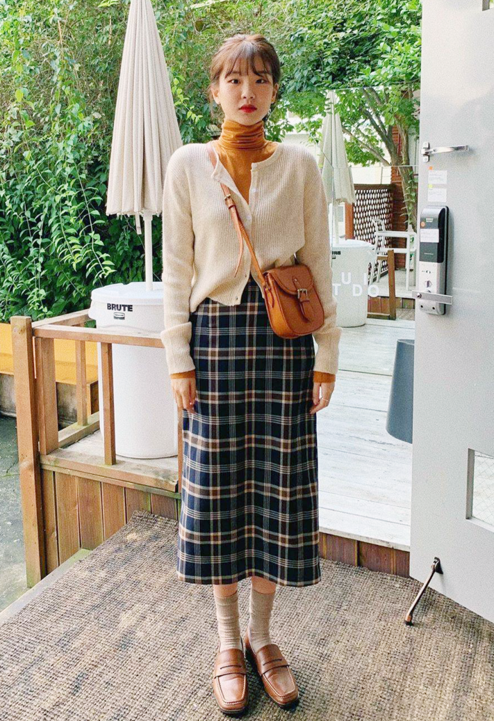 但如果你的腿不是那么完美,则可以选择各种线条流畅的半身裙,比如面料有垂感的梯形裙、一步裙、微A裙等窄廓形的裙子~👇
