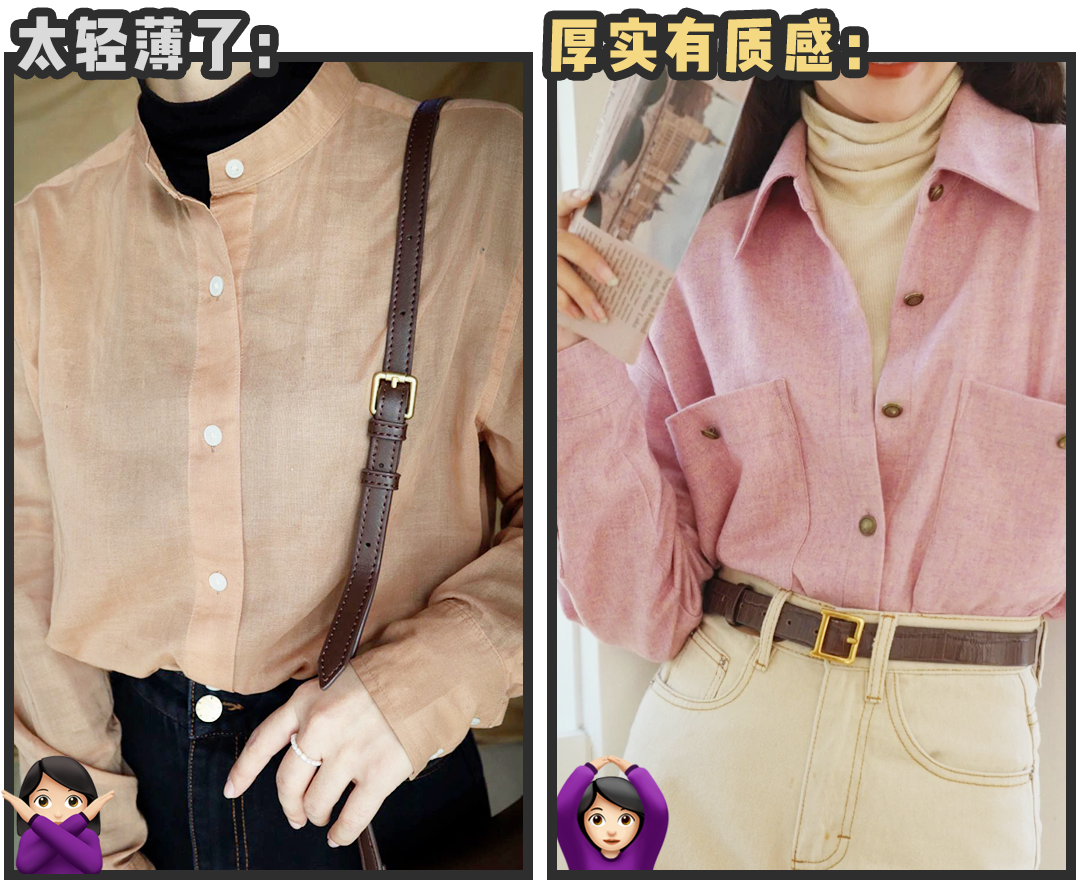 另外,衬衫叠穿的时候最好选择有点厚度的丝绒或者灯芯绒衬衫,就明显有质感很多了!👇