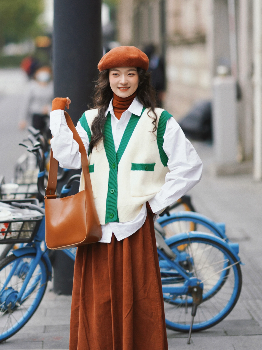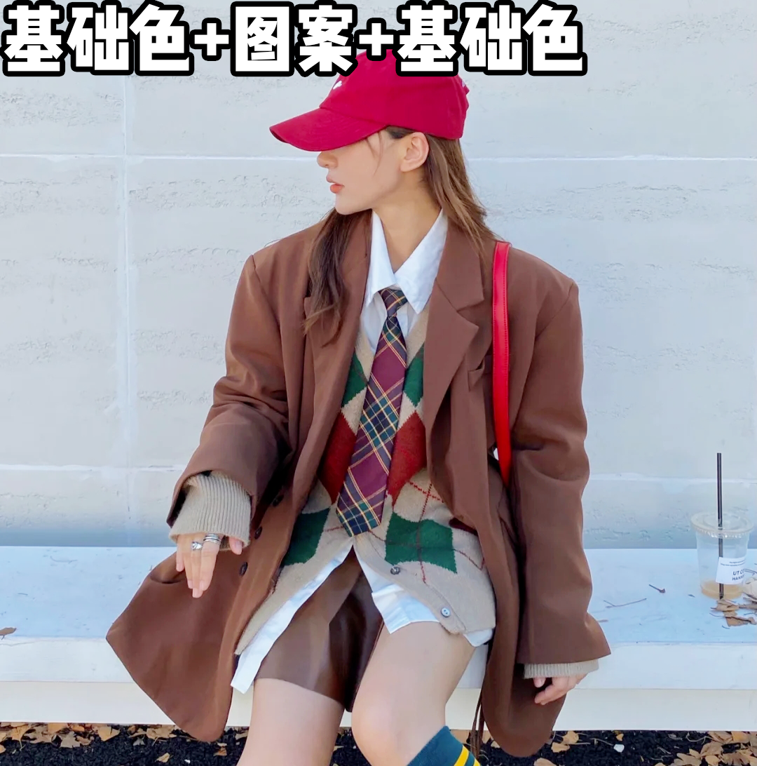 还有针织马甲或者衬衫,也是叠穿的小能手!