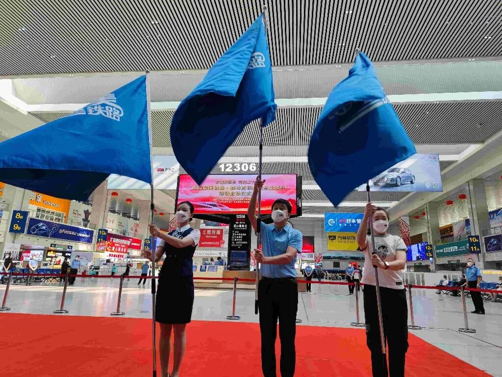 在启动仪式现场,嘉宾们观看了沈铁局制作的纪录片,了解了近年来沈铁局建设的亮点成绩。沈铁局相关领导出席启动仪式并为采访团成员代表授旗,主题宣传活动正式启动。