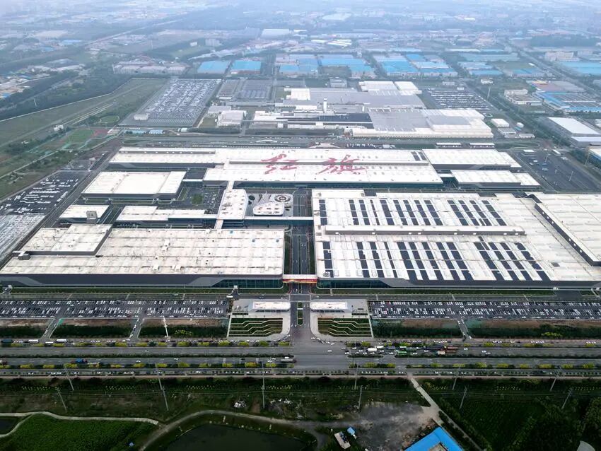 中国一汽红旗繁荣工厂在长春西南角拔地而起。(中国一汽红旗繁荣工厂供图)