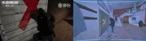 注意看以上两者的对比,《王者勋章》明显没有制造加固墙壁的动画过程,却尴尬地做出了与《彩虹六号》一样的加固动作。