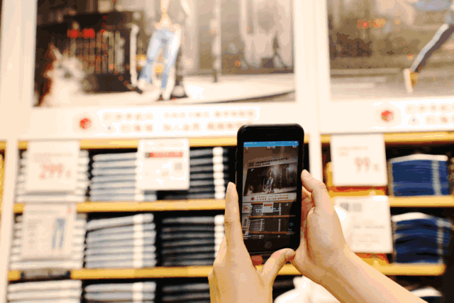 自称技术公司的优衣库在数字化上又干了一票。它把3月29日于深圳万象天地开业的当地旗舰店设计成了虚拟现实的体验馆。只要你打开手机QQ,使用其中的“AR扫一扫”功能扫描店内海报,就能在手机里看到动起来的服装搭配以及相关的设计故事。