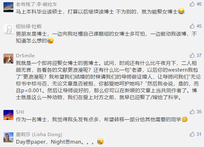 科研人拥有怎样的生活?在一贯的概念中,他们是混迹实验室,身穿白大褂,手握器材,精算数据的一批严肃学者。让人意想不到的是,其实他们的闲暇时光,也是可以时不时冒出一些接地气的吐槽段子,以最戳心窝的方式调侃自己的学术生活,如此一来,科研人有趣的一面就此藏不住了!在西安交通大学能源动力学院,就有位在读博士生梁墩煌,他白天是实验室里的科研专注者;晚上是脱口秀大军中的幽默制造者。从理性思维的创造,到幽默有趣的灵魂,他做到了切换自如~这位博士生对自己的看法是:很多人会觉得我们工科博士会比较沉闷,但是其实幽默的方式有很多种,而我们可能更多的是侧重在我们的段子的结构、逻辑,然后以及我们一些比较幽默的想法,以及我们出乎意料的表演。在梁墩煌看来,脱口秀与科研同样重要,二者共同构成了他的人生。他认为二者并不冲突,科研比如尤其是工科博士,他对于我们社会的科技生产力是有促进的帮助,而我在脱口秀这方面,可以进一步的让整个社会,让大家更加去关注了解我们科研工作者他的一些生活,以及他的一些想法。这样从另外一方面,也是对于我国的一些科研事业的一种推动和帮助吧。不止西交大有着这样的斜杠青年,让人们发现了工科博士有趣的一面,此前,北大也有位博士生小姐姐的脱口秀《娶妻当娶女博士》,使她一度登上了热搜,以下是段子节选:微博上有很多人说,你看这北大的女博士,白天愁论文,晚上愁嫁人。我说你也太小瞧我了吧?我明明就是白天愁论文,晚上还是愁论文呐。我要说:娶妻,你别娶女博士了!你老婆如果是女博士,如人饮水冷暖自知,你躲得过四下无人的街,躲不过独守空闺的夜......她是一位来自北大清华生命科学联合中心2015级的博士生,秦难寻。当时,在接受新闻采访的时候,她表示这是实验室年度聚会当中的一段表演,本来是一段小品,但是由于搭档临时有事,不得不更换节目,改成了脱口秀。秦难寻说,里面的台词不过是自己日常的吐槽集锦,是把3年的吐槽集结到了10分钟的节目里,她说女博士总是被吐槽偶尔也得反击。下面来看看她对于读博学术生活的吐槽段子吧~虽然很忙,女博士还有一个最大的优点,孝顺。为什么这么说,就是说古今中外吧,横亘在人类的人性伦理道德面前最大的难题,婆媳问题。一旦你读了博士,天天要与这种高智商而且逆天的生物,叫做导师的物种。天天你要和他沟通,我的天哪,婆婆根本不在话下。这个世界只有征服不了的导师,没有沟通不了的婆婆。我男朋友他之前给我买过四个钻戒,都被我扔了。我们要的礼物实在是太难得了,真正让我们眼睛发亮的东西,只有paper。如果你能燃烧自己的岁月,给我送来一篇paper。然后告诉我,嫁给我。我绝对会说,Yes,I will !以此文公布后,随之来而引发了大部分科研人直言自己生活经历,他们有趣的一面可以说在评论中显露无疑:除了像以上两位博士生,以脱口秀的形式充分展示了学术生活的“苦中作乐”,还有着看似一本正经(实则幽默感十足)的理工科博士张亚辉,他从西北工业大学开始本科生涯,到获得巴黎萨克雷大学博士学位,将人生这一阶段的10年求学经历写成了综述文章。课堂此前转载过这篇朴实且诚恳的求学著作:本硕博10年经历竟然能写成综述!理工男近三十而立的真实感悟。文中直白地将自己作为研究对象,从体重外形、生活状态、恋爱经历的生活基础问题,到个人理想与抱负的精神追求,可以说全面且客观地研究了一下自己。看完之余,让人不禁觉得:捧腹大笑的同时,也真真切切体会到了科研之路的酸甜苦辣。既然话题说开了,就不得不展示一下,科研人一看就心照不宣的那些生活段子了。怀孕生孩子是什么,就是你老公给你提供了一个细胞,然后你就在那苦苦做实验,发一篇高质量的SCI,最后你老公和你并列第一作者,还得第一位置,因为孩子跟他姓。更气人的是,通讯作者多半是你,屁大点事儿还得先联系你。 一位从事科研的兄弟结婚不久,与几个朋友喝酒,醉倒后不省人事。被抬回家后,老婆试着用各种办法给他醒酒,都无济于事,于是打电话询问他的同事该怎么办?同事说,你喊一声:仪器出问题了,数据都没了,实验室打来电话了。老婆不解,但照做了。没想到声音刚落,只见男人噌的一下从床上蹦起来,精神抖擞地大喊道:什么情况?我的工作是实验加模拟,成功地结合了二者的主要特点:别人不信,我也不信。监制:caicai