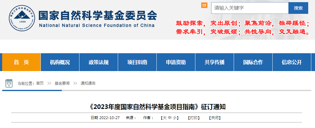 基金委官网发布:《2023年度国家自然科学基金项目指南》预计于2023年1月中旬正式出版,届时将以电子和纸质两种形式同步刊出。