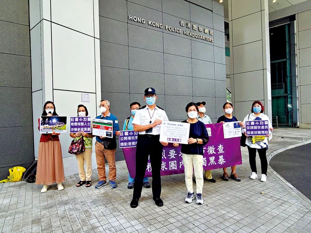 昨日,有市民團體在警察總部外發起「嚴懲欖球圈內港獨分子」集會,強烈要求警方徹查欖球圈內的「港獨」黑暴行為。![]()