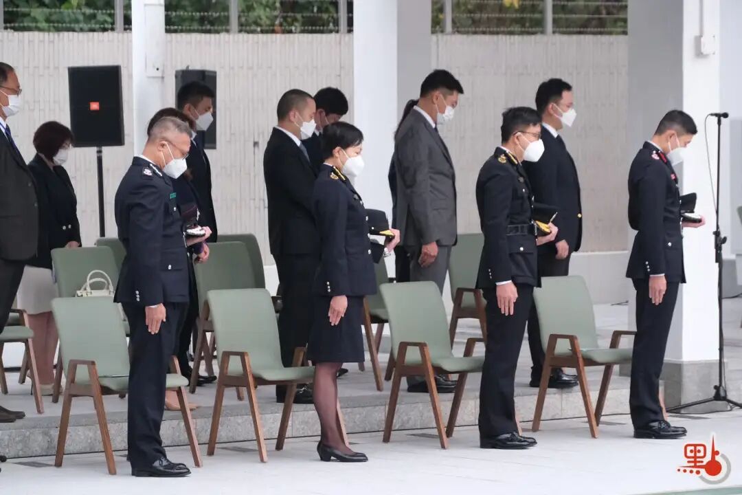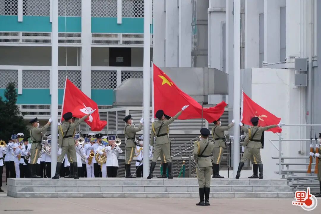升旗儀式開始後,國旗、區旗及黨旗先升至桿頂,再下降至旗身橫長二分之一處。全場默哀一分鐘,悼念已故前國家主席江澤民。→《一連兩天香港的這一幕,感動全網!》