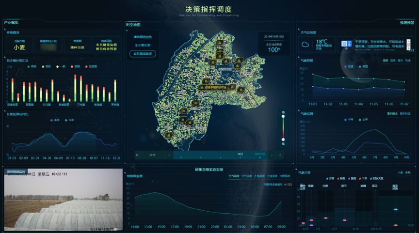 此外,基于佳格天地的遥感数据及气象数据,平台集成了农业资源、生产、市场、管理、气象灾害预测等多维度数据,通过数据可视化,真正实现了”挂图”作战。