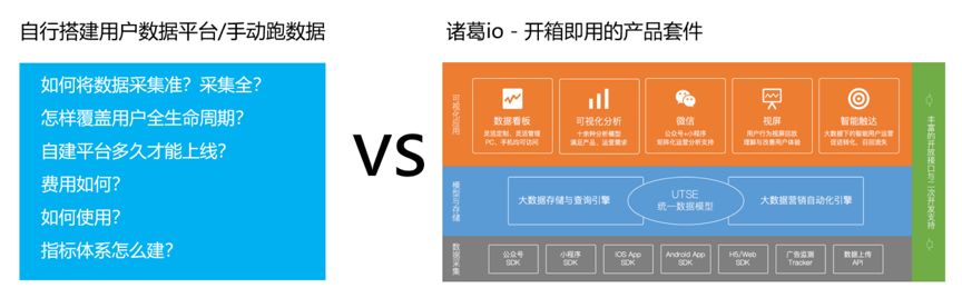 企业自己搭建大数据分析平台,在人工成本,设备成本,维护成本的投入也会非常的巨大,甚至很多企业一套数据平台搭建,还没见效果,已有百万级的投入。诸葛io一站式搭建大数据分析平台,可以为企业节省90%的时间,领跑市场和竞争对手。