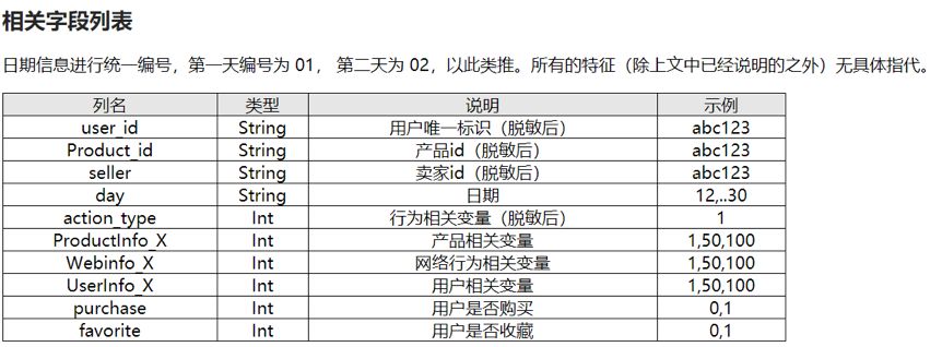 2.对于脱敏数据的数据分析和特征工程思路,因为数据安全性的考虑,本次的数据采用的是脱敏后的数据,这对于选手团队的数据分析以及基于数据分析的特征工程能力提出了一定的要求,判断哪些数据字段或是数据字段的组合是有效的,如何衡量每个数据字段的重要性甚至如何去推测某个指标的含义都是值得关注的点;