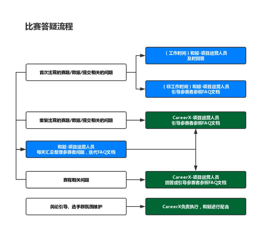 在参赛选手社群运营方面,和鲸科技向参赛选手微信群中派驻专业的技术及项目人员,对选手问题进行及时响应和协助解决,同时,通过FAQ的方式对高频出现的问题进行定期梳理、总结和沉淀,保障选手能够通过集中呈现问题的通道得到更有效率的答疑体验。