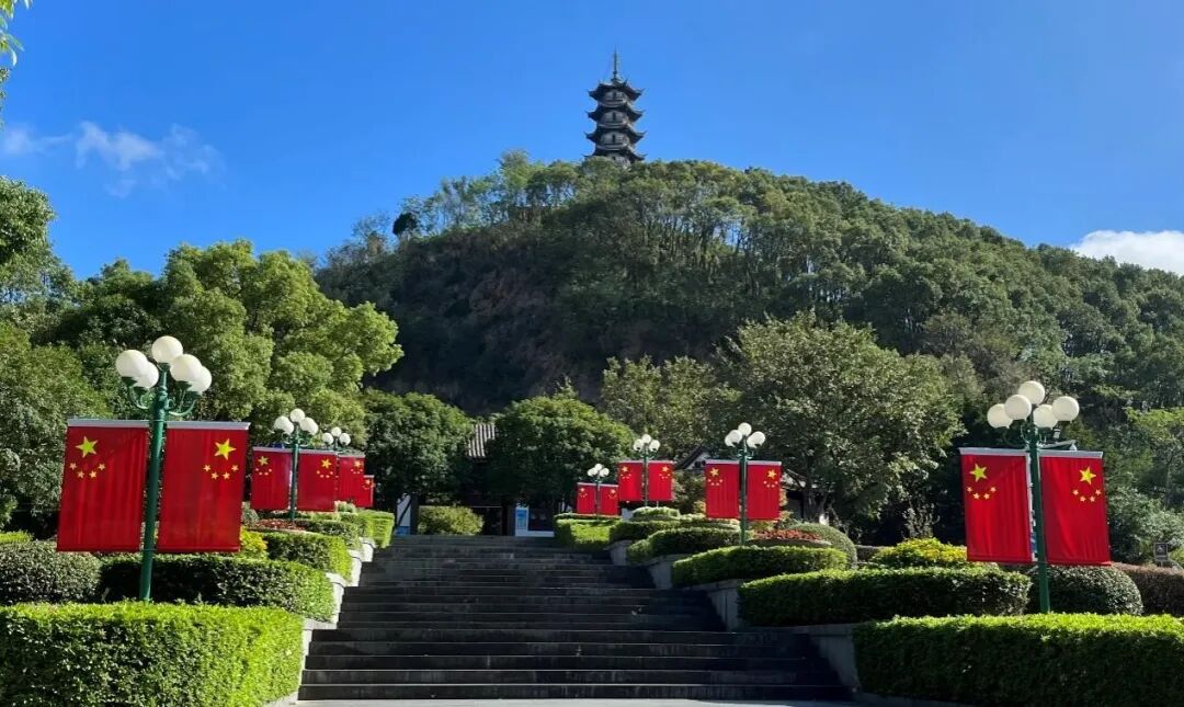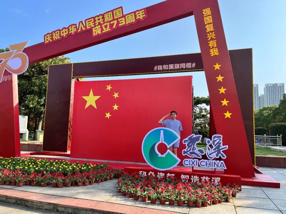国庆的五马街头,映入眼帘的就是红色巨型国旗,红色的"China"激荡起了内心最祖国的热爱和自豪!