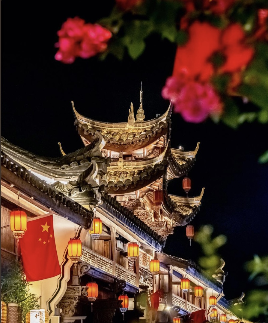 身为徽州人,我在国庆期间再次游览了屯溪老街,这里熟悉而又不熟悉。鲜红的国旗飘扬在马头墙上,与古朴而雅致的徽派建筑相得益彰。穿越小巷,满眼是红色的欢腾与高昂,我为祖国而骄傲。