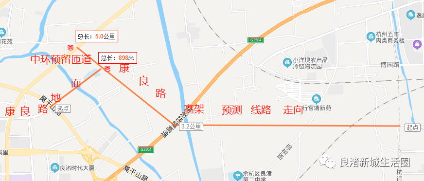 而康良路在规划的高架快速路走向是东起上塘高架康桥路口,向西北沿着康良路直接连通运溪高架杭州中环互通,也就是运溪高架栅庄桥互通!
