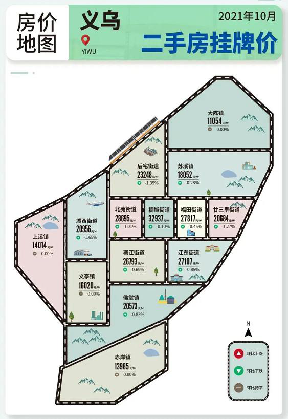房价直追一线城市义乌是全国最富县城,据国家统计局义乌调查队发布的数据,2020年义乌居民人均可支配收入达71210元,排全国第二,仅次于上海。从安居客网站看到,义乌目前在售新房价格在1.2-4.1万元/平方米不等。义乌二手房均价为2.38万元/平方米,部分学区及豪宅地段的房价已超5万元/平方米。▲义乌各区域10月二手房均价排名,图片来自安居客。据58安居客数据,同样是10月,武汉二手房均价为1.68万元/平方米,成都为1.41万元/平方米、长沙为1.04万元/平方米。这意味着,义乌的房价已超过多个省会城市。今年10月,北上广深的二手房均价是3.49万-5.91万元/平方米。这表示,义乌的有些地段,比一线城市部分板块的房价,还要高。“江浙沪人本来就很富有吧?”在部分人看来,义乌的高房价很“合理”。毕竟在人们的普遍印象中,江浙沪人都是做生意的好手。在义乌经商十余年的张峰说:“虽然经济比起很多县城还算发达,但配套环境真的差一些。当地的学区房,单价也好几万了,我个人觉得房价离谱。”“房价太高,教育和医疗又比不上房价相当的地方。真不知道高价房卖给谁?”一位义乌人对当地房价评论。实际上,义乌近年来正在大量拆迁,并提供了土地和“一夜暴富”的拆迁户。单在2020年,义乌启动城中村拆迁项目34个,完成拆迁城中村7822户。拆迁范围还涉及到工业土地。按照义乌市出台的《低效工业用地清理整治工作实施方案》,2万亩工业用地已被划入整治范围,该计划将于三年内完成。有人戏称,义乌人不是已经拆迁完,就是在拆迁的路上。这场拆迁造富运动,让一些电商创业者躁动了。一则电商店铺转让信息显示:“家里拆迁,之前全力铺垫的电商板块已无心打理,义乌多个天猫老店特价处理。”