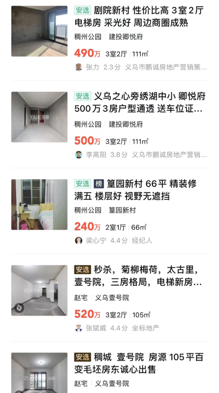外来投资客撑起市场一位当地人认为:“虽然义乌电商行业发达,但是电商哪里都能做。随着全国物流更加完善,义乌的优势便弱了很多。”义乌官方正意识到这一点,于是开启了一场人才争夺战。2020年6月,义乌发布了人才购房新政。至此,在义乌买房的门槛一降再降。新政颁布后,在义乌买房不需要当地户口。更重要的是,“人才”在义乌买房,还能享受30万、20万元不等的购房补贴。讽刺的是,新政为外地人来义乌“炒房”撕开了一道口子。据义乌当地多位地产中介介绍,目前义乌二手房基本“0”门槛,有钱就能买。一手房涉及人才补贴的,则需要社保等证明。在义乌中心区,普遍存在有外地投资客购房。在二手房平台可以看到,义乌多个在售二手房均为毛胚状态,明显是投资属性,而并非自住住房。▲义乌的二手房平台挂出大量毛胚房,图片来自安居客。“由于总价低,投资客买房后,就将房子放盘到市场上。”一位中介对无冕财经表示。当地一位居民认为:“房价确实是外地人撑上去。”他观察到,由于义乌房价过高,身边不少本地人并不看地产市场。在当地拥有一套房后,义乌人会在义乌周边及杭州购房。