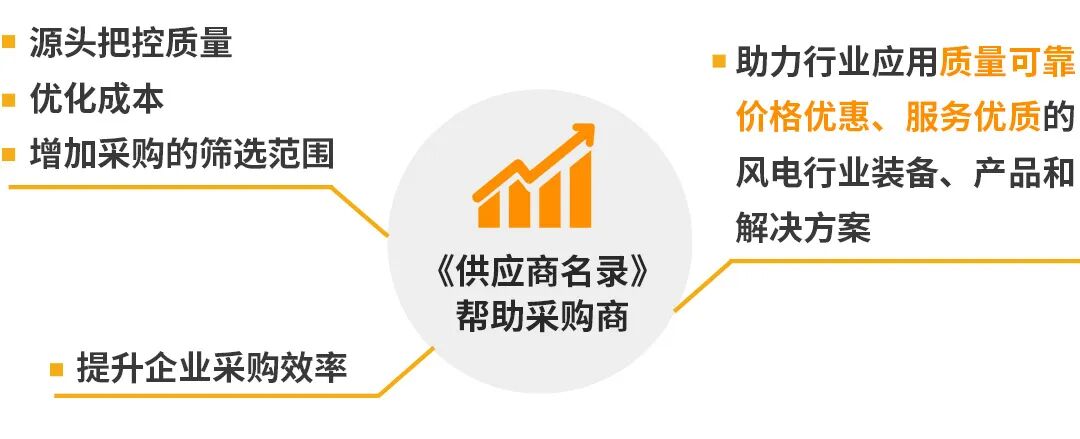 《供应商名录》主要是帮助采购商从源头把控质量、优化成本、增加采购的筛选范围,提升企业的采购效率,助力行业应用质量可靠、价格优惠、服务优质的风电行业装备、产品和解决方案。