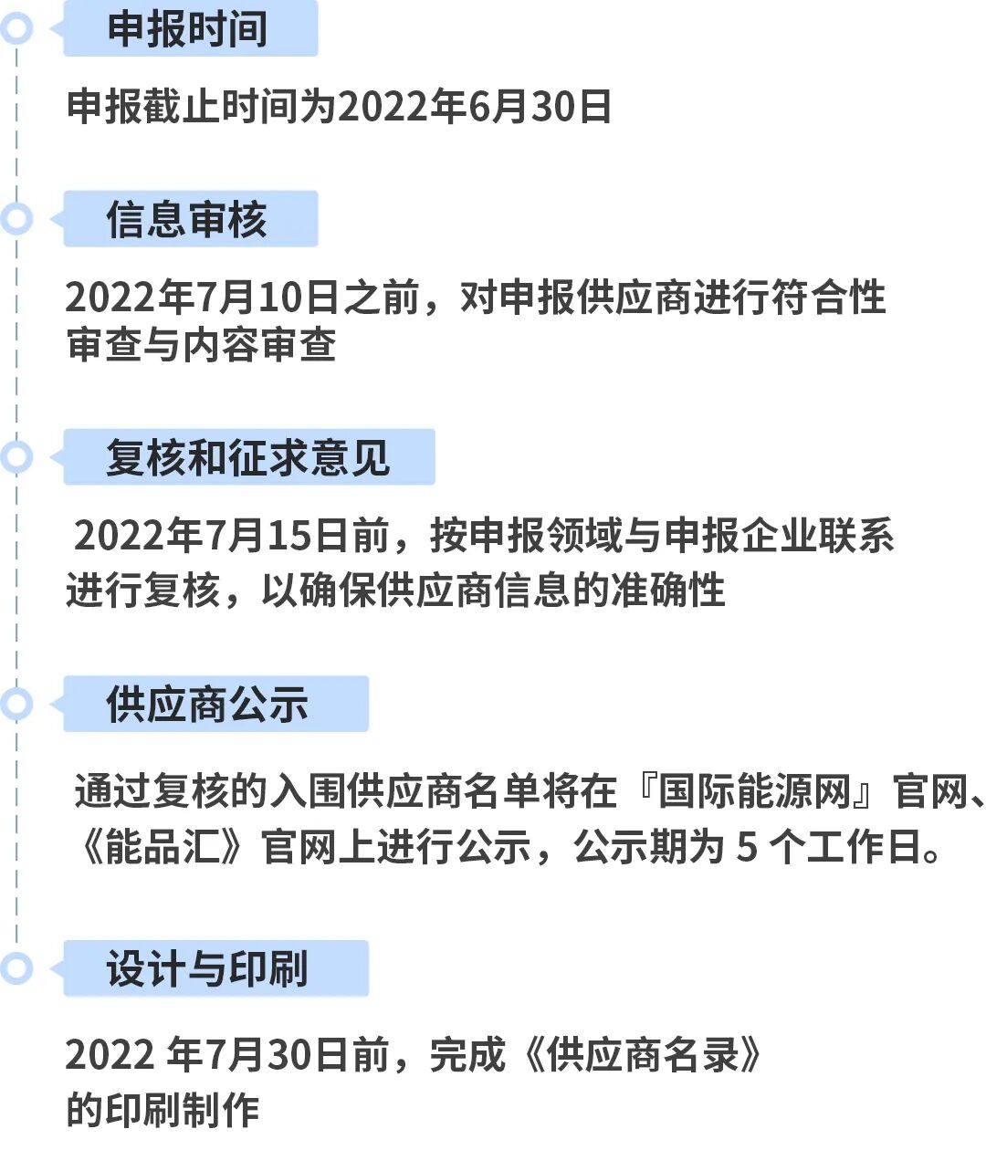 本次征集活动已于5月5日正式启动,《供应商名录》将实施供应商筛选计划,对各报名单位报送的资料进行遴选、评审,坚持公正、公平、公开评审原则,完成供应商收录。届时供应商将在《能品汇》官网进行全年展播,并且收录于《全国风电行业供应商名录(2022版)》。《供应商名录》入编的企业,将优先作为电商平台询价、采购的对象。
