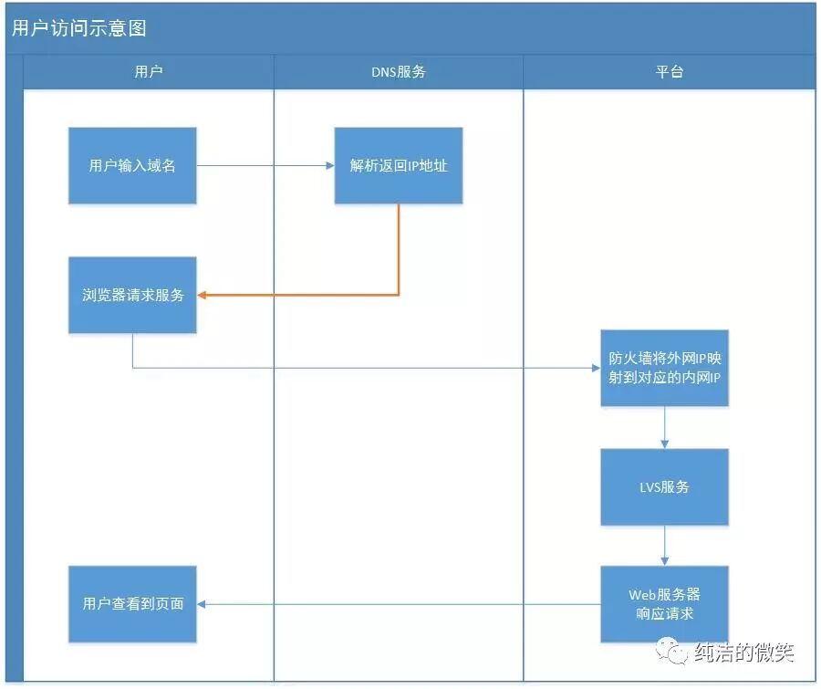 10点,开发和运维反复的检查后,开始怀疑dns解析有问题,但具体是什么问题还不清楚,CTO决定:1、大家都打车往公司走,来公司集体解决 2、在各QQ群、微信群给用户群发解释xxx问题,安抚客户。在车上的时候重新梳理了一下用户的整个访问流程,如下图: