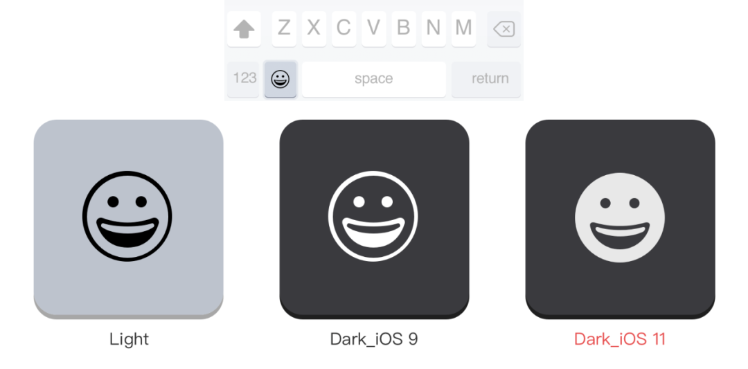 在深色模式中,icon的表现上建议不要直接翻转颜色或者保持原样,不同的icon需要进行针对性的处理。白色背景可以更好地表现出形状,人的大脑可以将白色脑补成图形的一部分。然而在暗黑模式下,这种作用消失了,人脑更倾向于认为这些空白的部分是镂空的,如下图:在iOS 9上,苹果公司采用的办法是将浅色模式下的线性图标颜色反转,拿到深色界面下使用。等到了iOS 11,苹果公司将这个图标在暗黑模式下改成了面性图标。